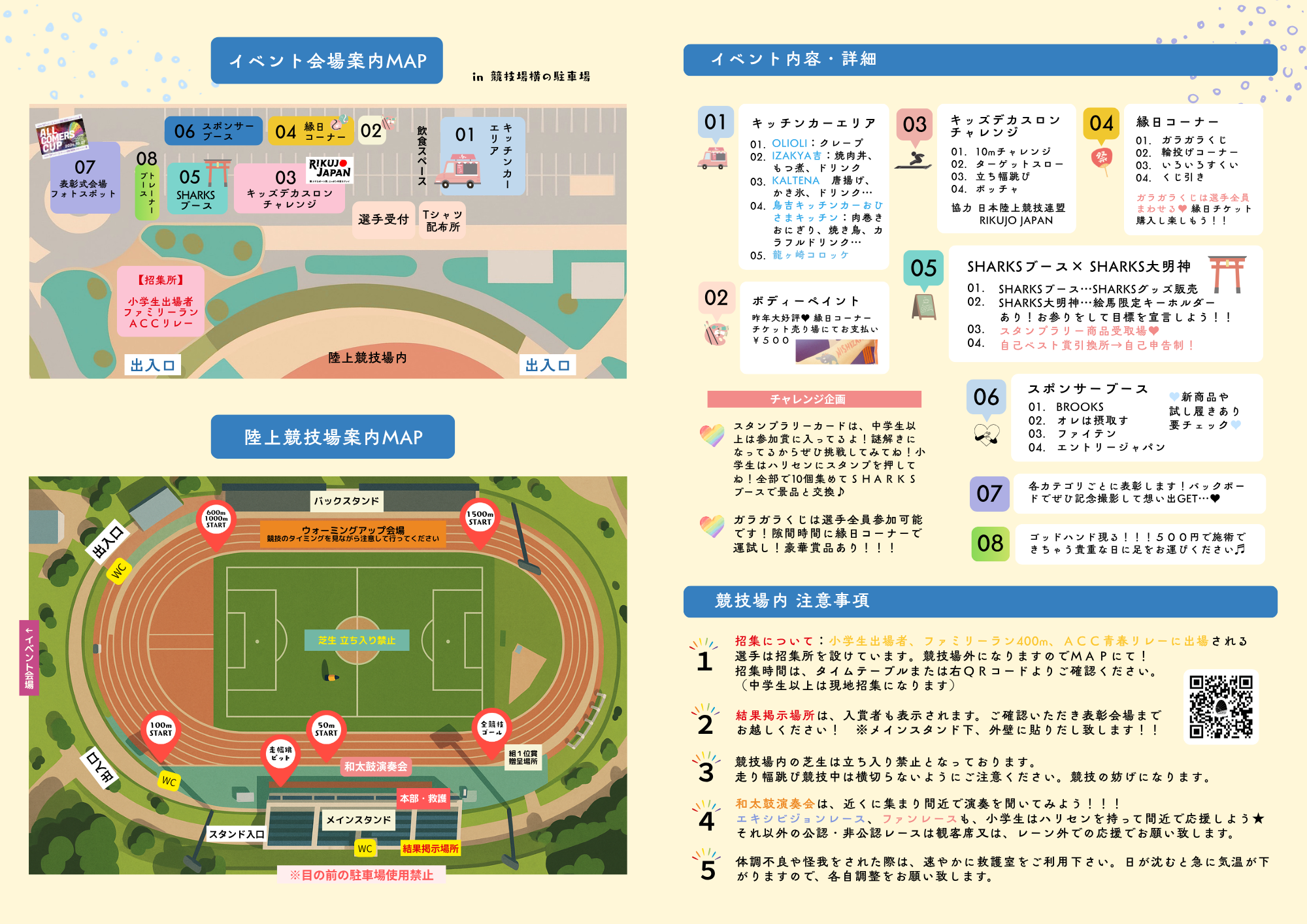 本大会は雨天決行です。イベントレース・イベント会場・表彰式につきましては、雨次第で変更中止縮小等の可能性がございます。